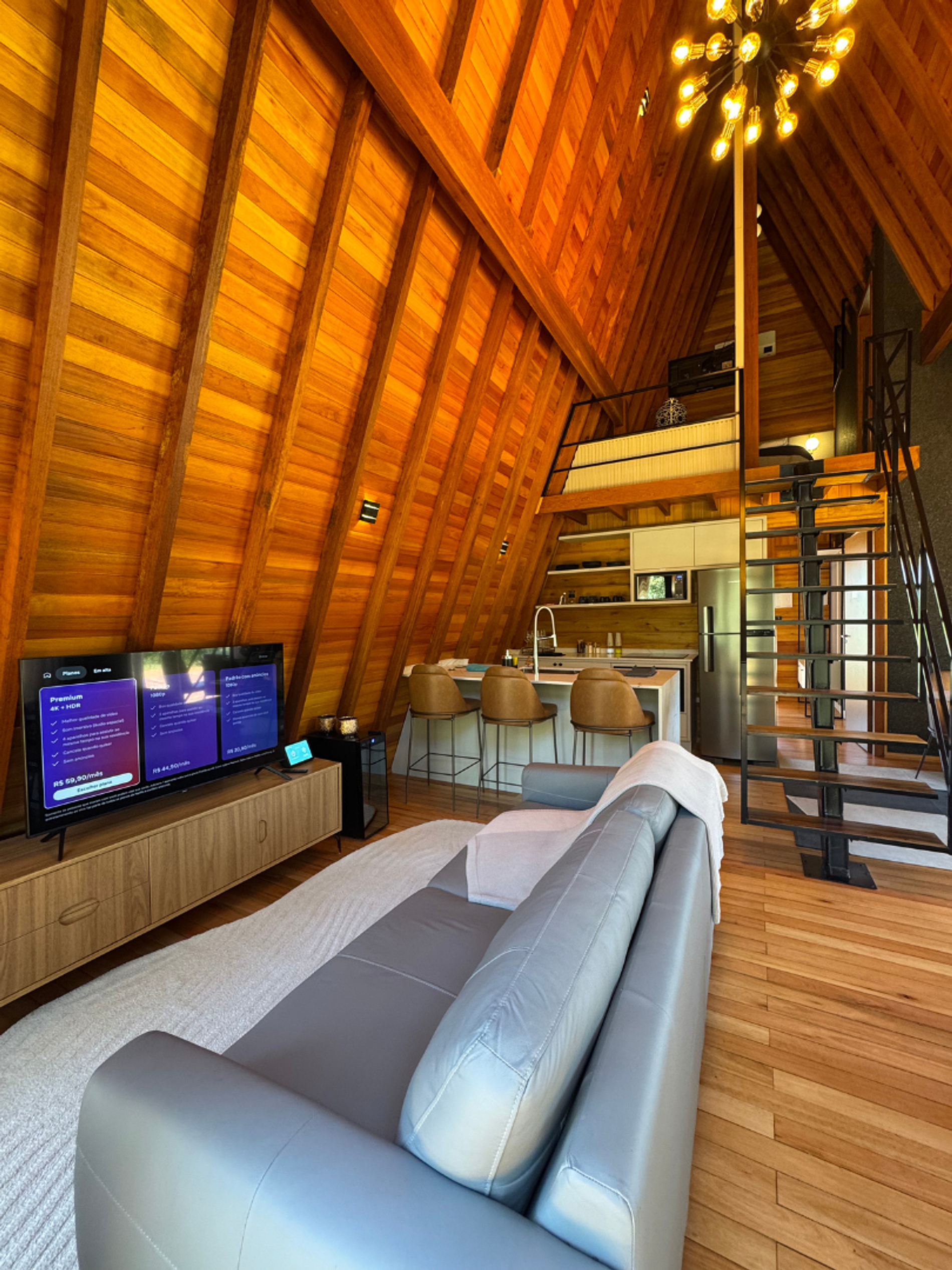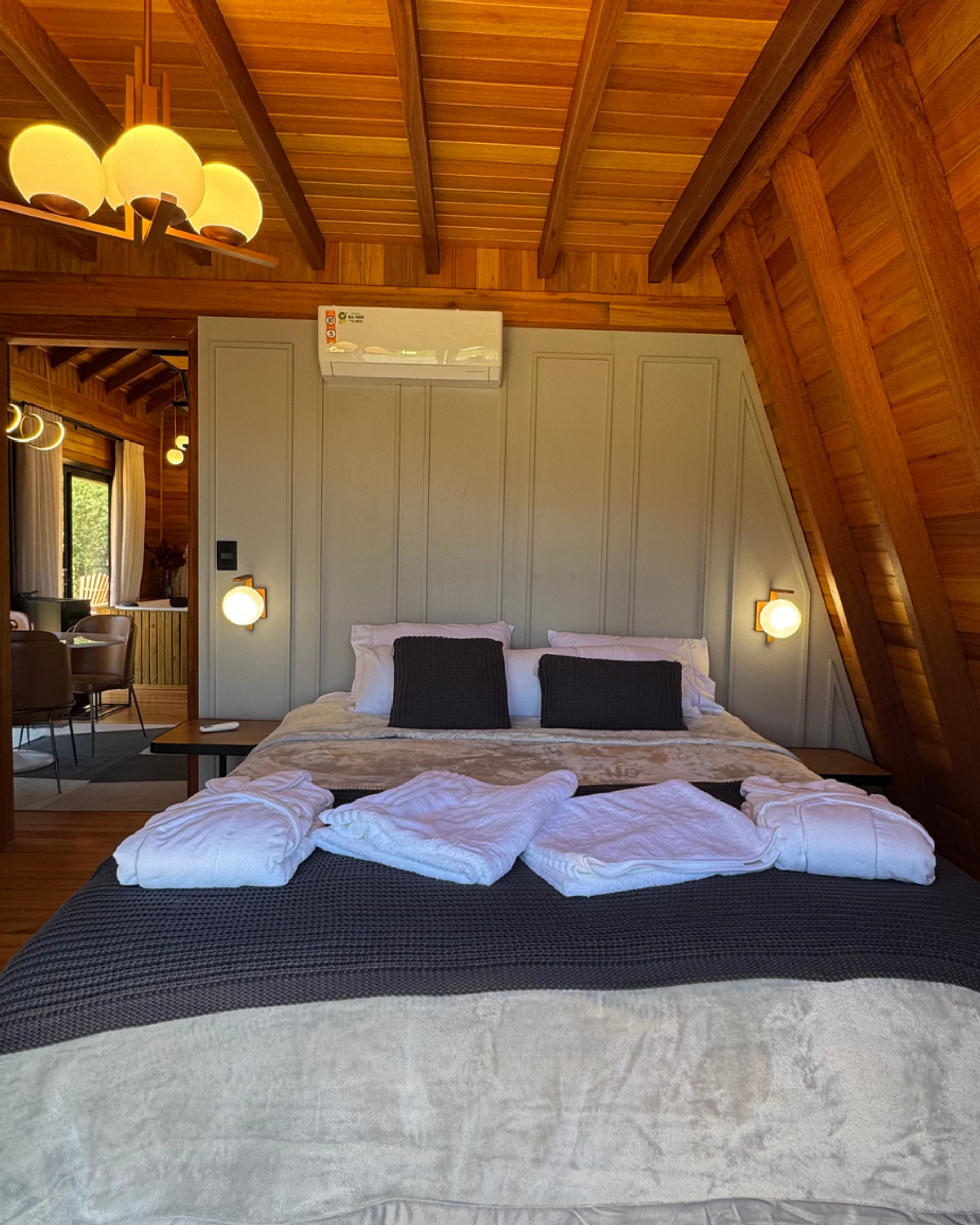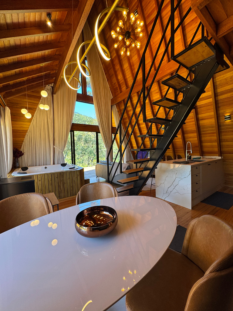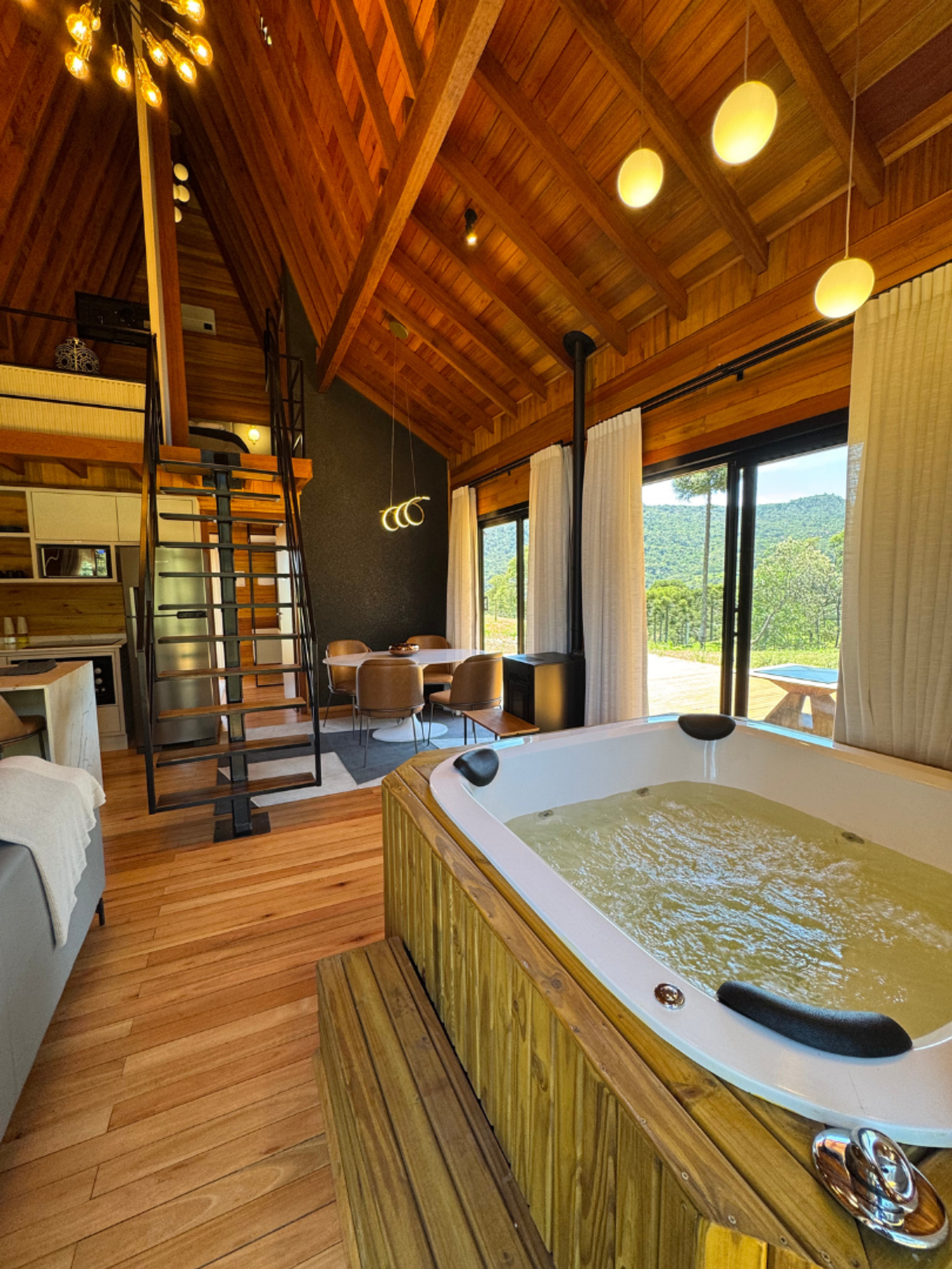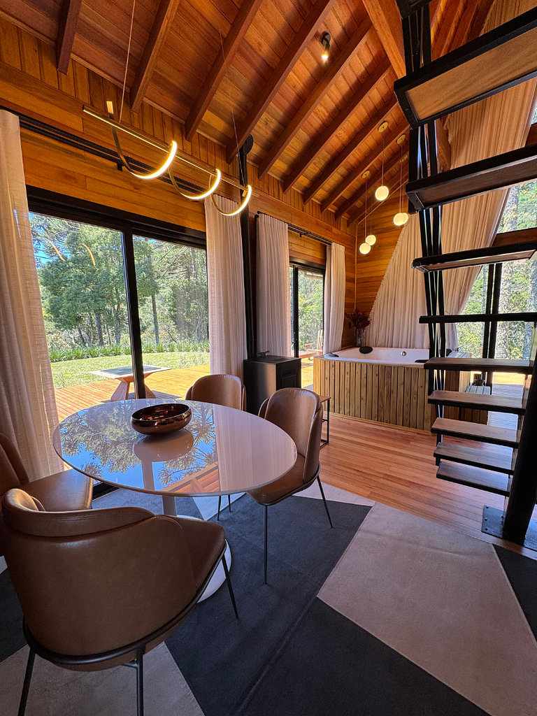 A combinação do charme rústico e conforto moderno oferece vistas incríveis da natureza. Com hidromassagem, cozinha completa e ambientes aconchegantes, proporciona uma estadia tranquila e relaxante. O design acolhedor e a proximidade com a natureza garantem um refúgio perfeito para quem busca paz e bem-estar.