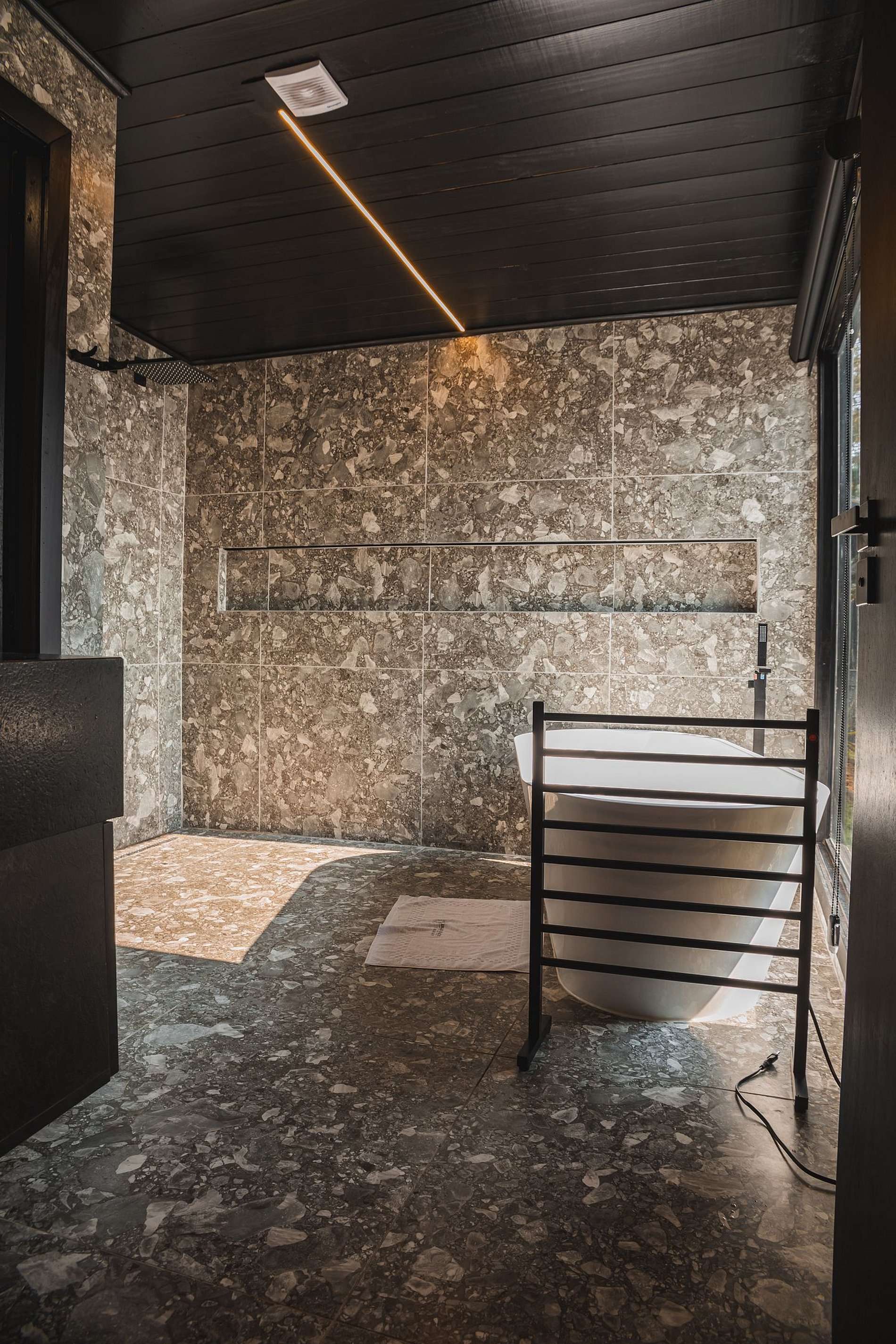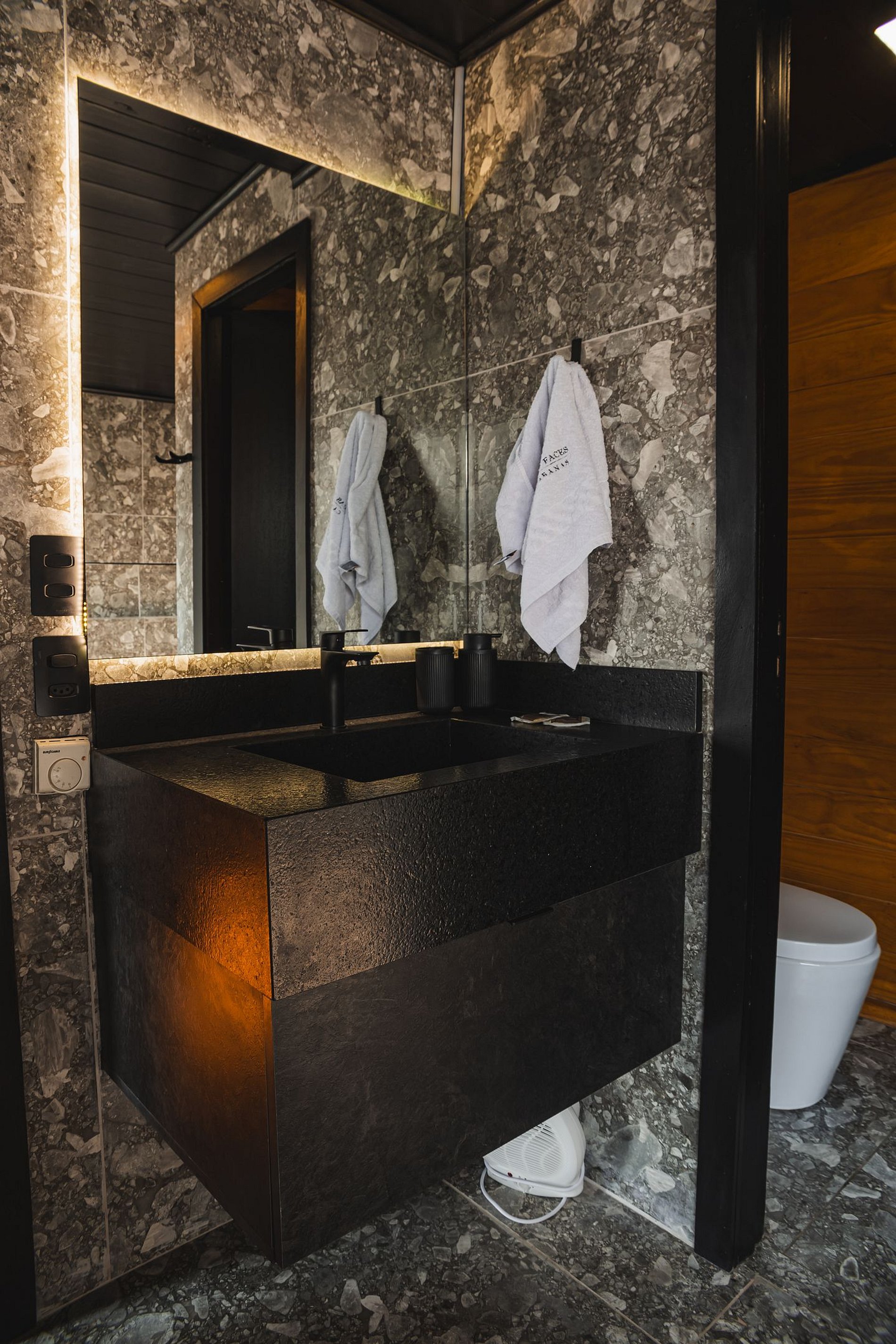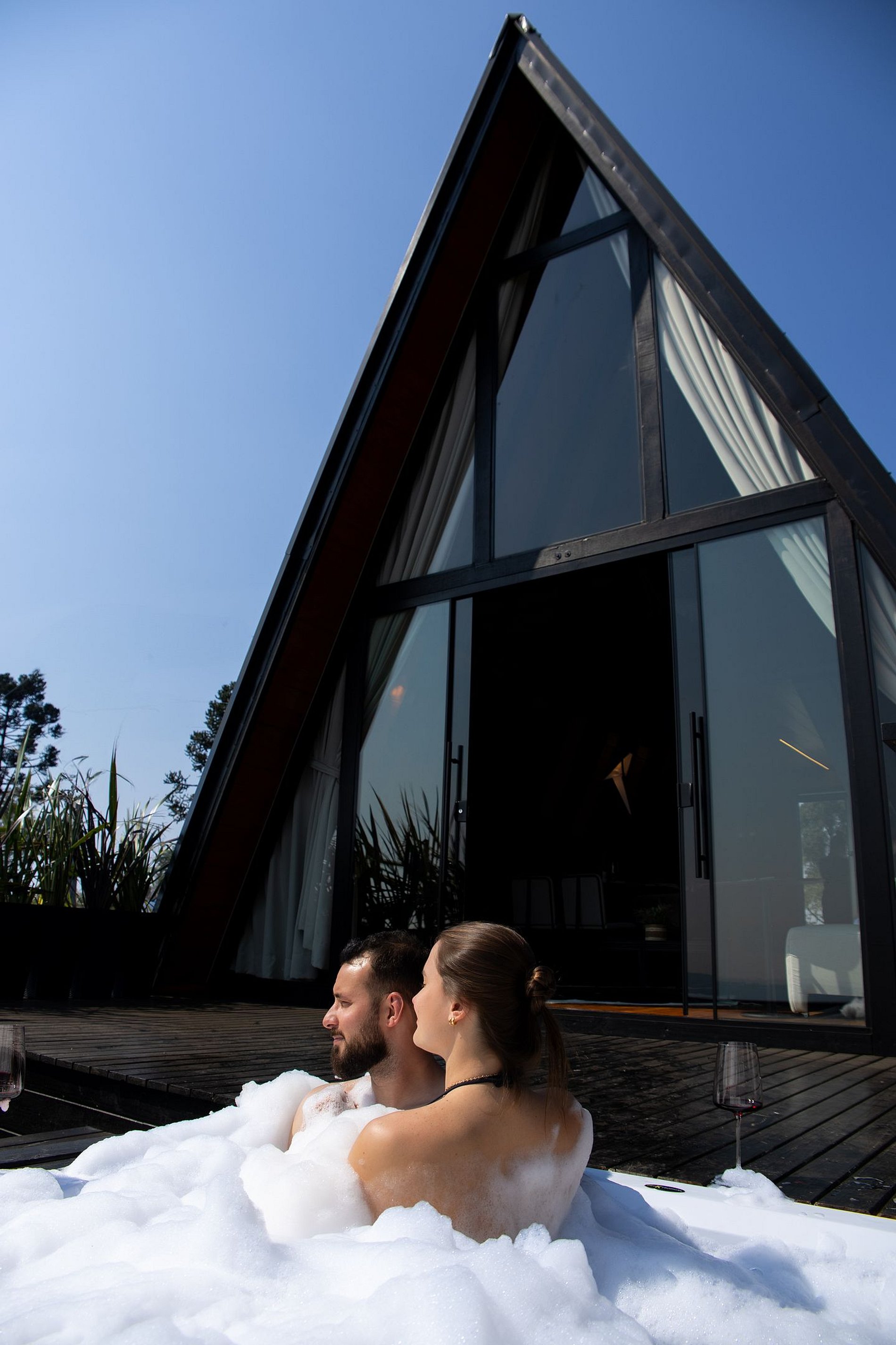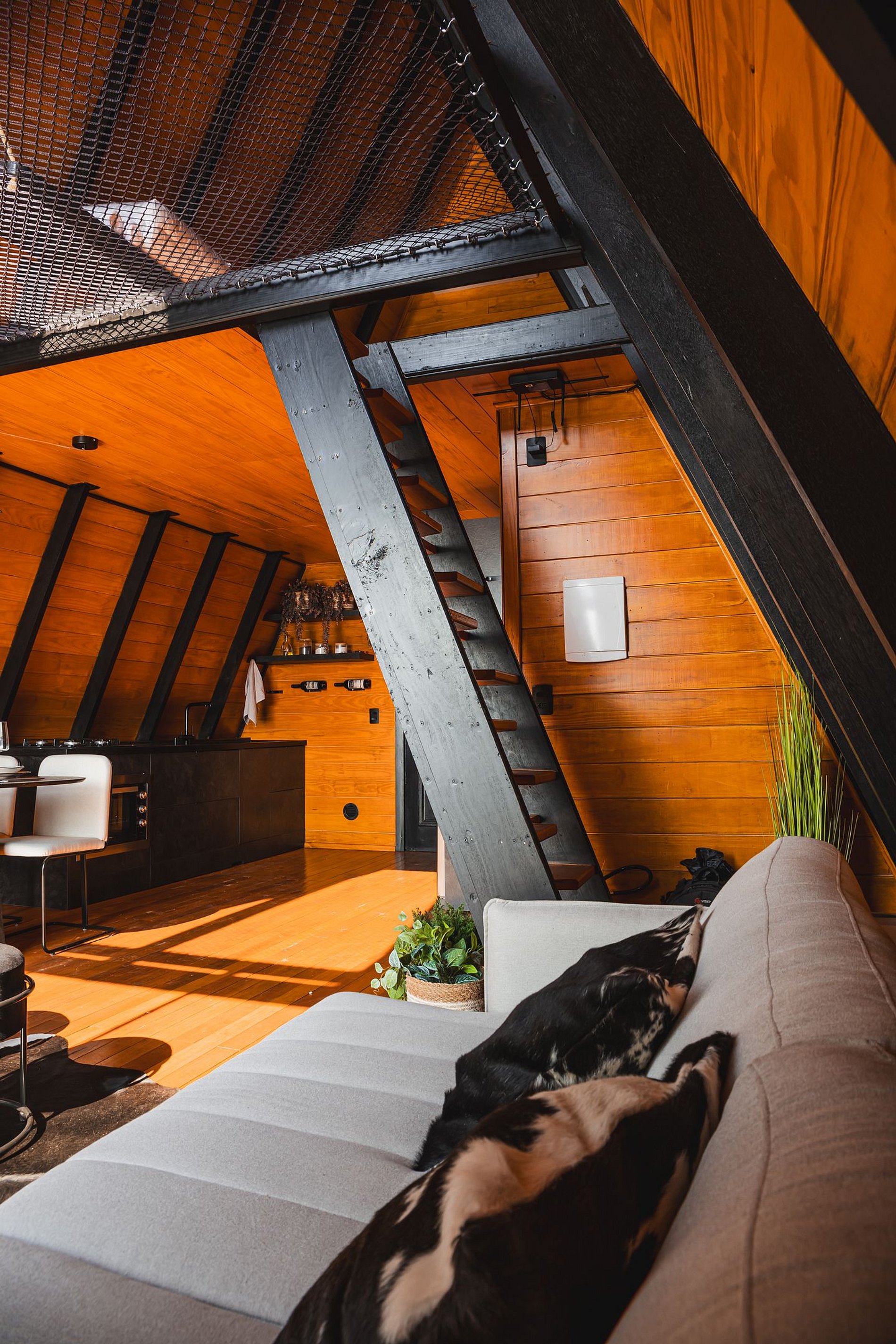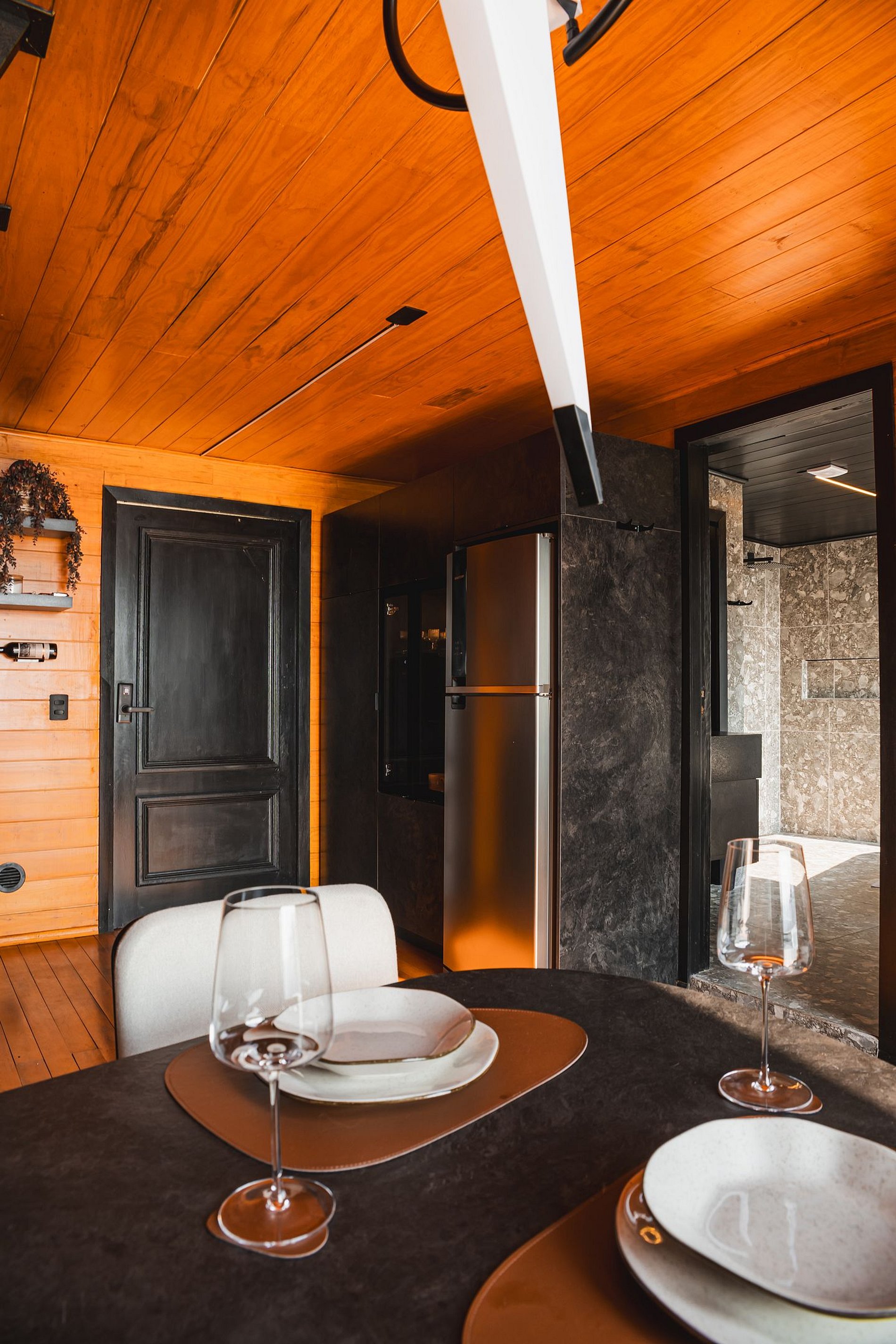 Aqui temos cozinha completa e equipada, adega, banheiro completo com chuveiro duplo à gás e banheira de imersão, sala com sofá cama, SmartTV 55”, lareira a Lenha, ar condicionado quente/frio e um deck maravilhoso com vista para o horizonte.
