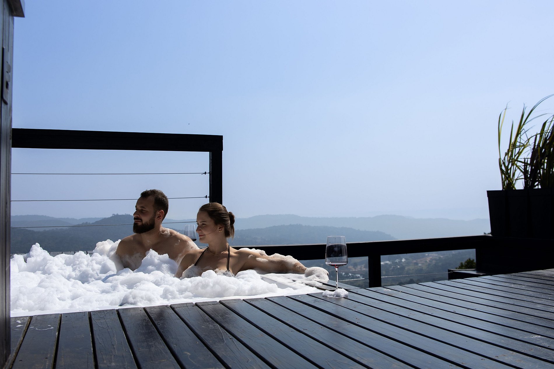 Seja bem-vindo ao Chalé Lua Cheia, localizado no coração da natureza! Este chalé acolhedor combina o charme rústico com o conforto moderno, proporcionando uma experiência inesquecível para quem busca relaxamento e tranquilidade. O ponto alto do chalé é a banheira ao ar livre, situada em um deck privado. Ela oferece uma experiência de relaxamento única, com a possibilidade de apreciar a bela vista da natureza enquanto você se aquece na água quente, seja de dia ou à noite.
