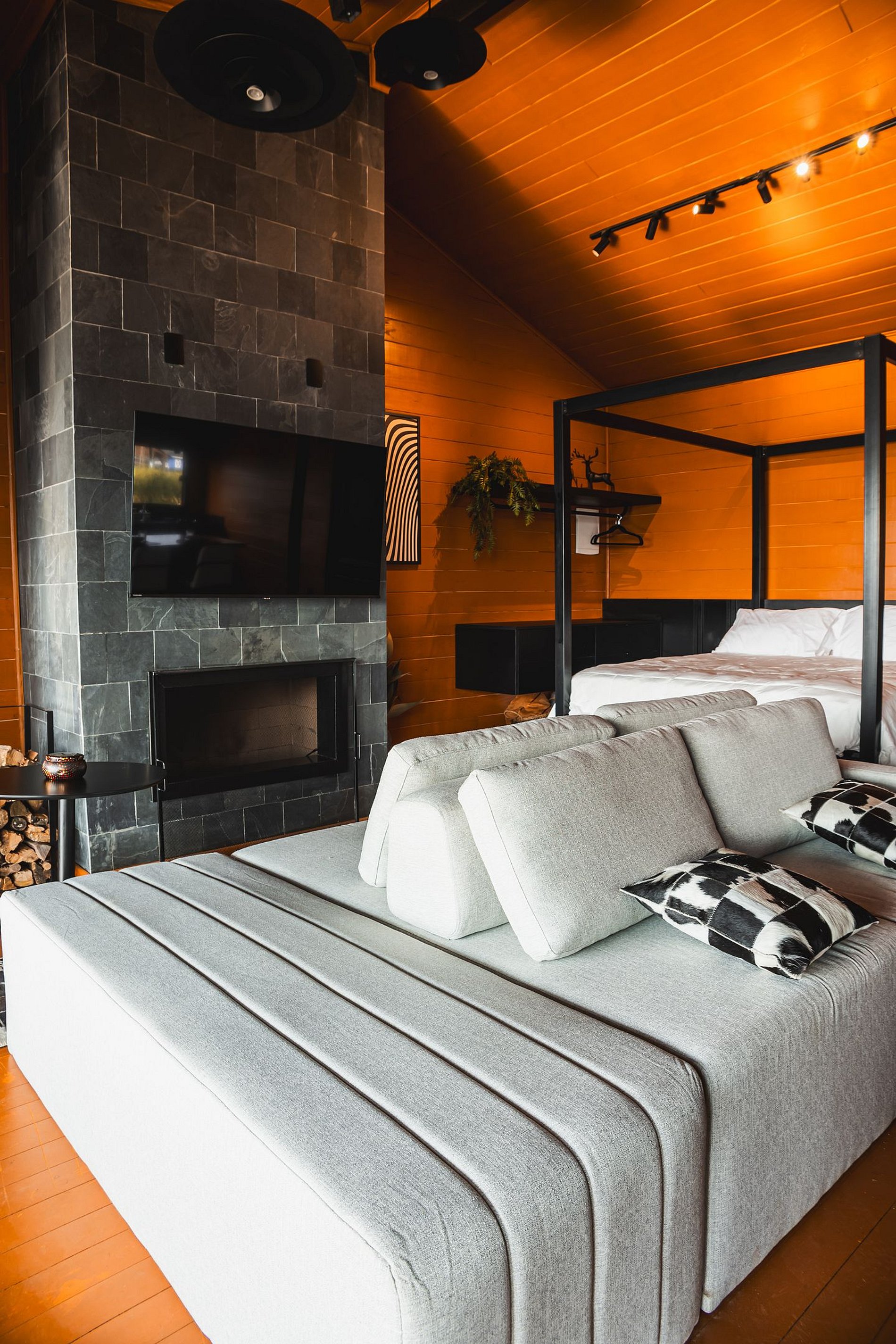 Os hospedes possuem acesso privativo a todos os ambientes da cabana, incluindo o Deck e o FirePit externo e uma linda piscina com aquecida com borda infinita que é de uso exclusivo da Cabana Lua Nova.