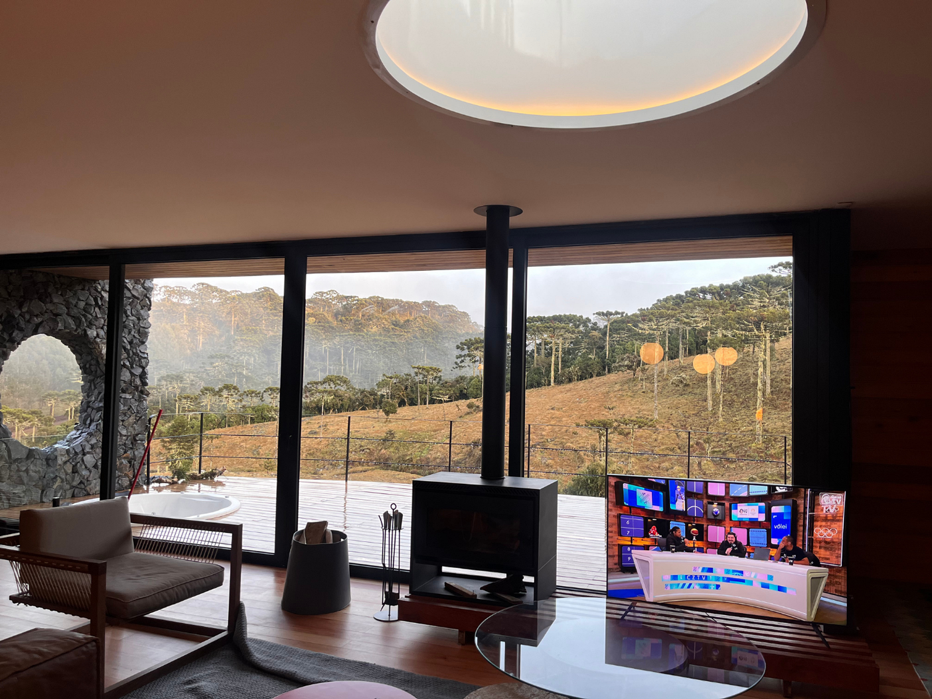 Refúgio ideal para quem busca relaxar e se conectar com a natureza. Com uma arquitetura impressionante, o espaço oferece vistas deslumbrantes e um ambiente tranquilo, perfeito para momentos de descanso e convivência em meio à serra.