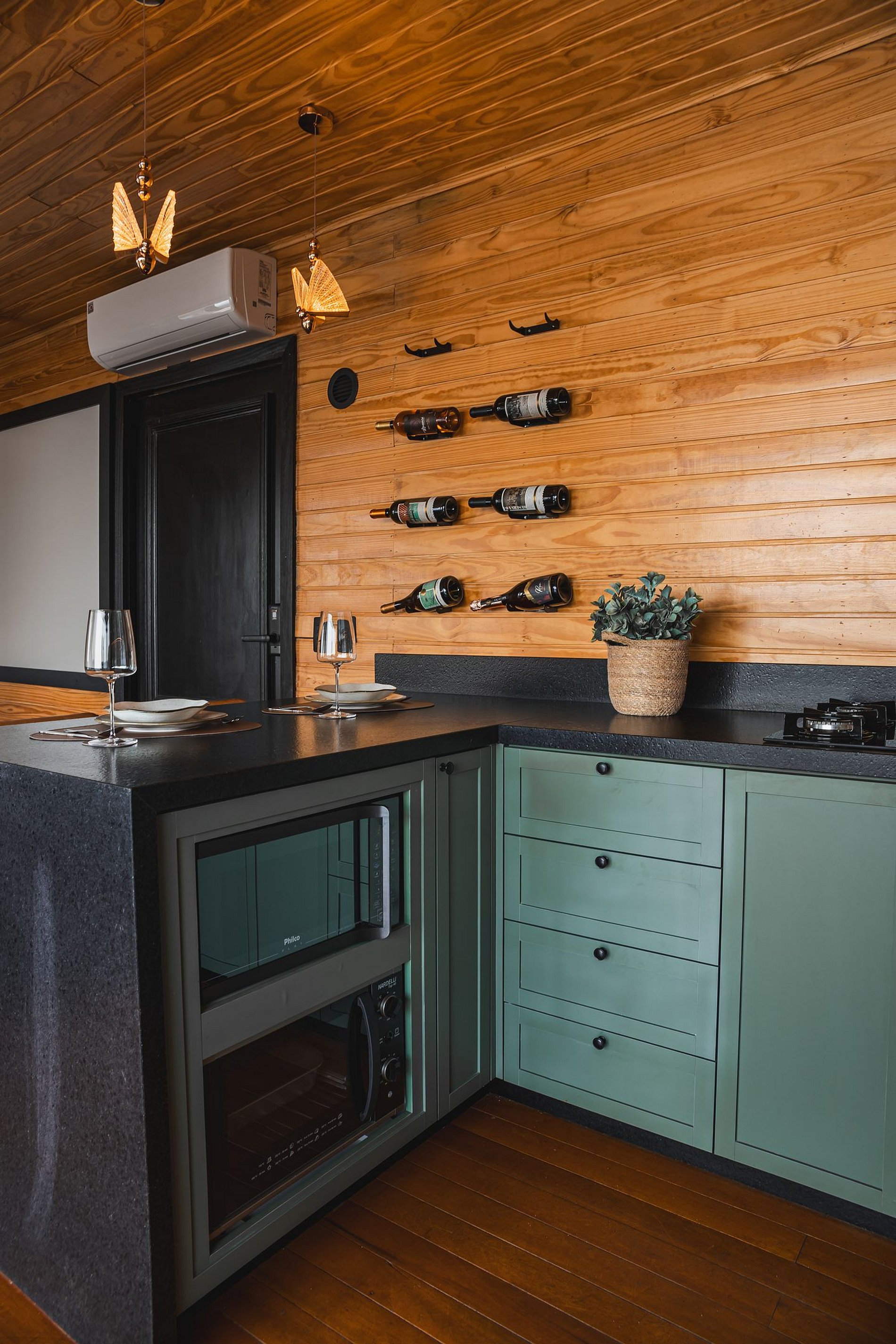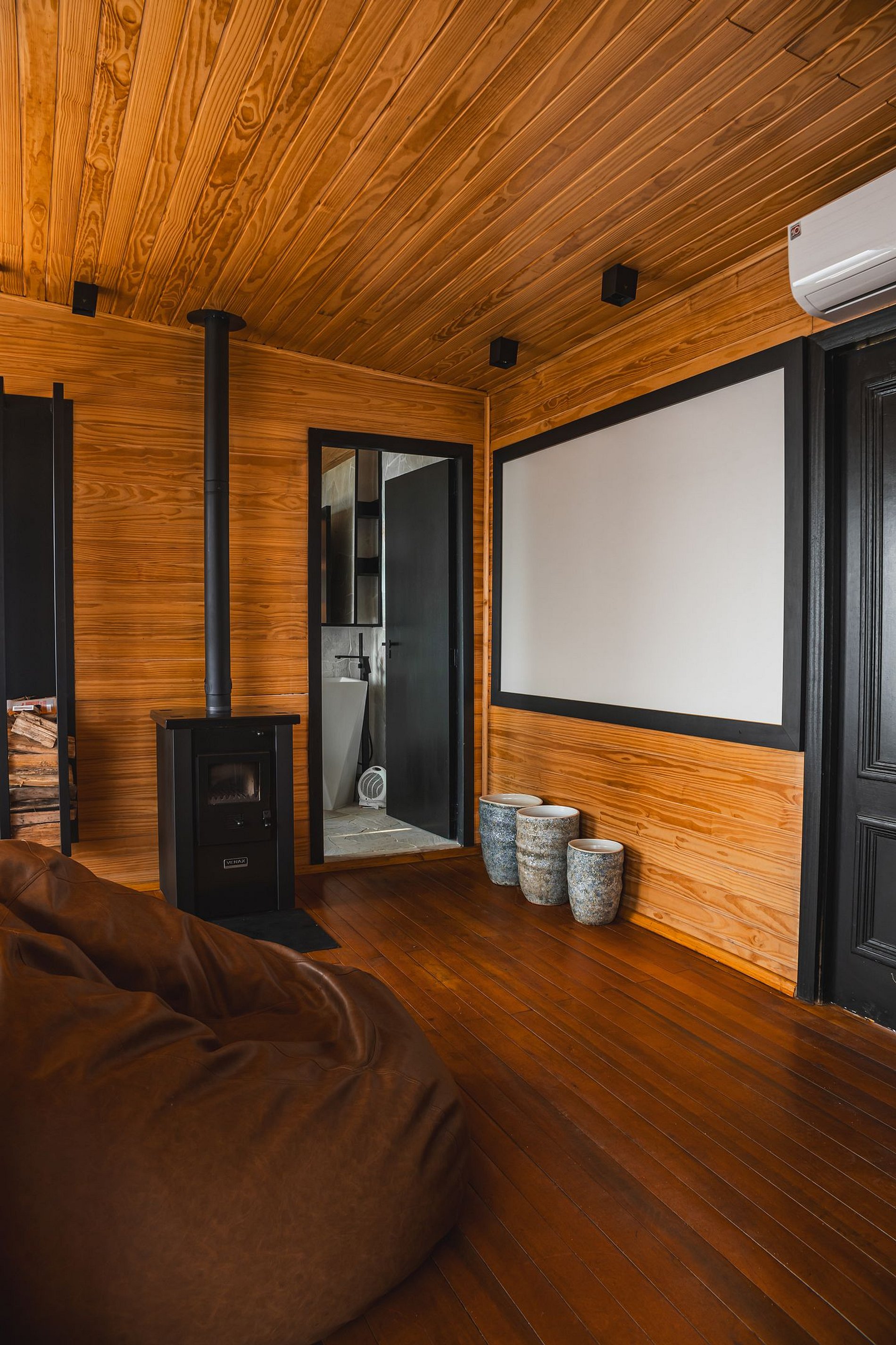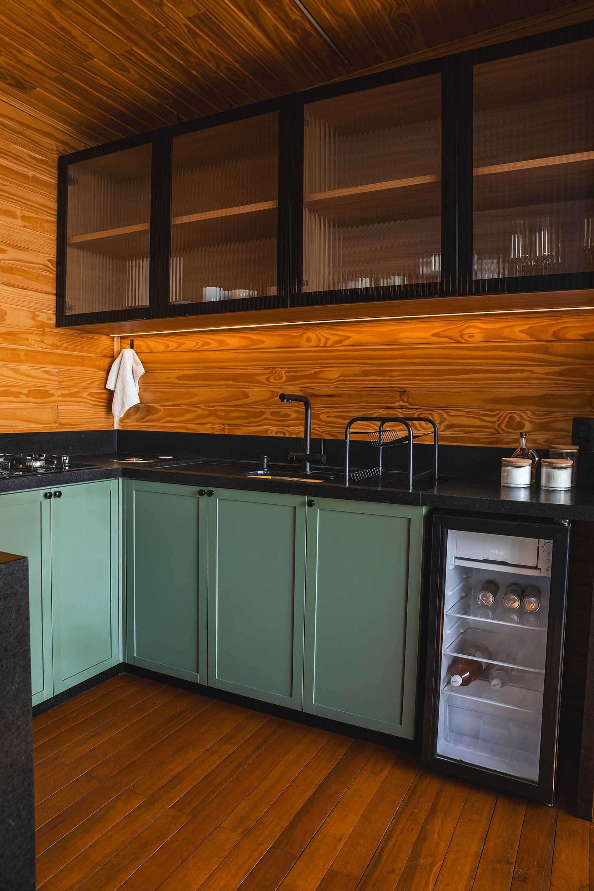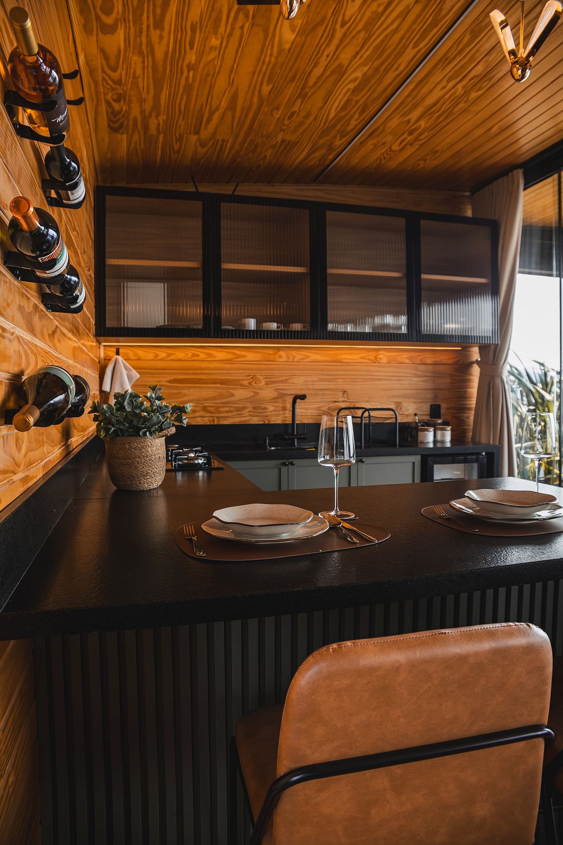 Aqui temos cozinha completa e equipada, adega, banheiro completo com chuveiro duplo à gás e banheira de imersão, sala com sofá cama, SmartTV 55”, lareira a Lenha, ar condicionado quente/frio e um deck maravilhoso com vista para o horizonte.
