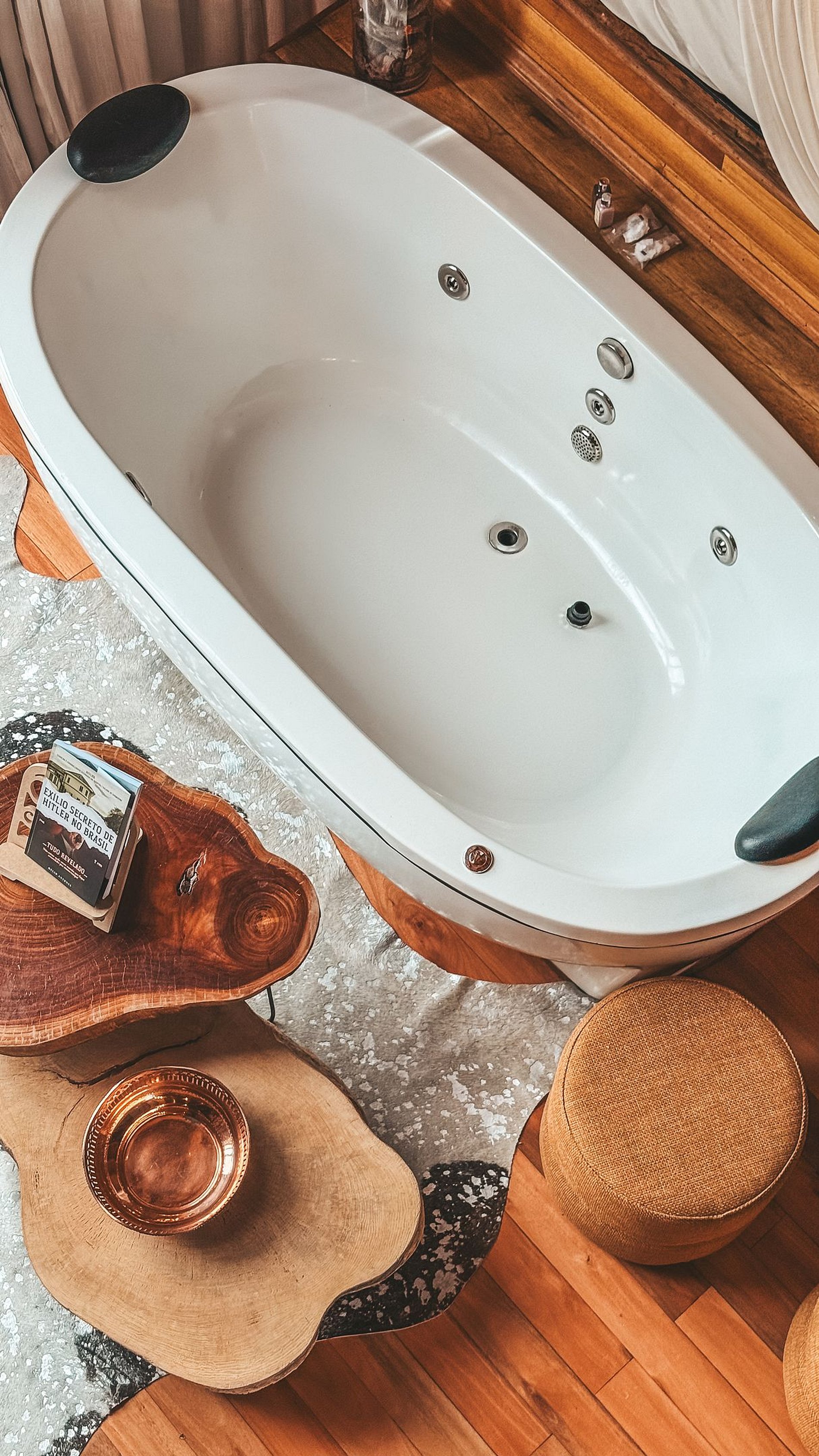 Este chalé oferece uma experiência de conforto e tranquilidade, ideal para casais ou pequenas famílias. O espaço é perfeito para 2 pessoas. O destaque do chalé é a hidromassagem integrada ao ambiente, oferecendo um espaço relaxante com vista para a natureza que concede momentos de descanso e bem-estar, além da cozinha completa que garante autonomia aos hóspedes. O chalé combina o charme rústico com o conforto moderno e proporciona uma estadia tranquila e imersiva no campo.